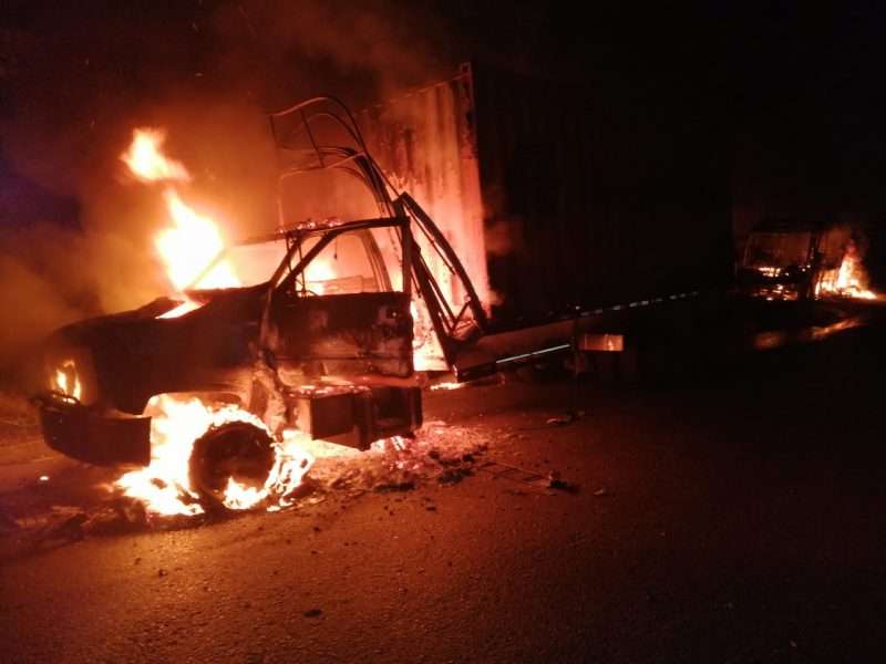 Los terroristas del grupo armado, realizaron un retén ilegal en la zona para obligar a los conductores a descender e incineraron seis vehículos.