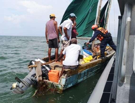 De inmediato, la Unidad de Reacción Rápida de Guardacostas se trasladaron a la altura de Bocas de Tinajones, en el departamento de Córdoba, donde se encontraban los cuatros hombres que habían zarpado desde Santa Cruz del Islote, en el Archipiélago de San Bernardo, con destino a Moñitos.