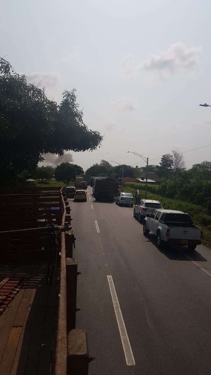 Debido a esta situación, el flujo vehicular se ha visto restringido ocasionando un fuerte trancón en la zona, pues no hay paso por ningún carril de la doble calzada.