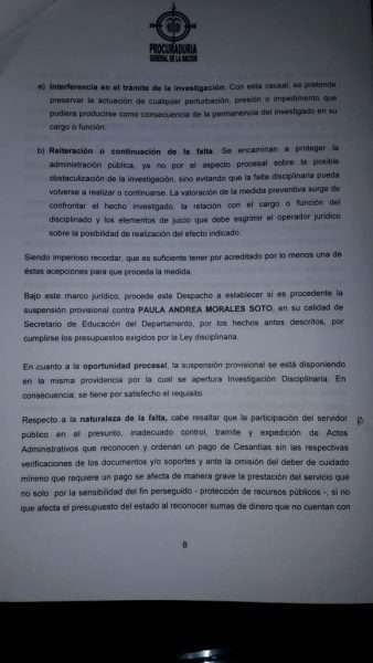 Luego que la Procuraduría ordenara la suspensión provisional por tres meses de la secretaría de Educación departamental Paula Andrea Morales Soto, se conoció que esto obedecería a las presuntas irregularidades en el reconocimiento y pagos de cesantías a docentes del departamento en la vigencia 2019.