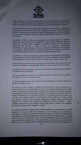 Es de recordar que, el fallo de la Procuraduría Regional de Córdoba es de primera instancia y Morales Soto puede hacer uso del recurso de apelación ante este organismo con el fin agotar la doble instancia.