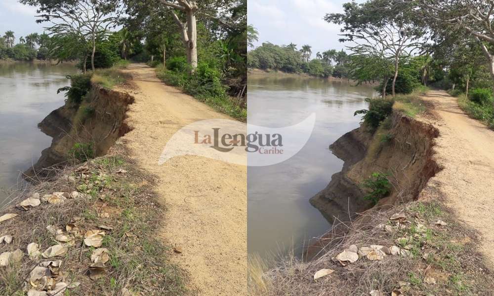 De acuerdo con la denuncia recibida en La Lengua Caribe, una de las poblaciones más afectadas es la vereda El Caño, ubicada en la margen derecha, donde la erosión ha ocasionado un “boquete” aproximadamente a 150 metros del puente que comunica este municipio con la vía santa Lucía.