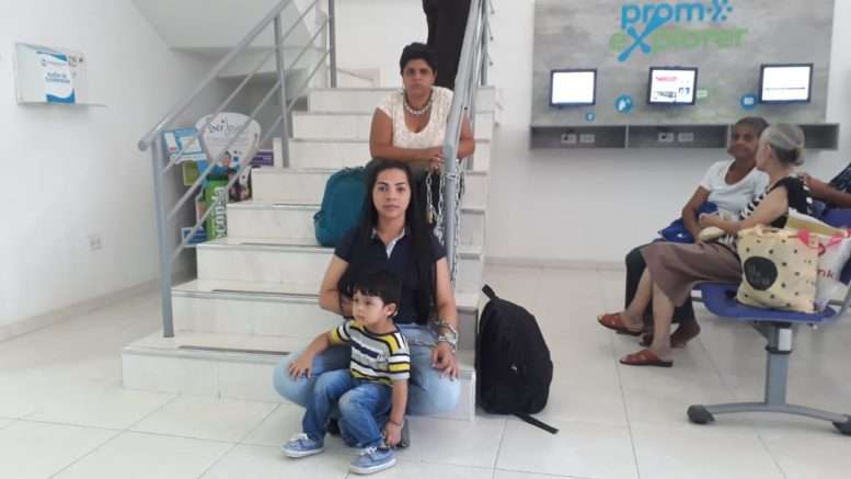 Juana Acevedo, la madre del pequeño Matías, que necesita con urgencia una cirugía, se volvió a encadenar en la sede de Promosalud en Montería.