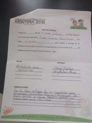 En vista de esta problemática el operador del PAE, procedió a realizar la entrega de un refrigerador en calidad de préstamo, con el fin de garantizar un “plato bien servido” que asegurara la buena alimentación de los niños.
