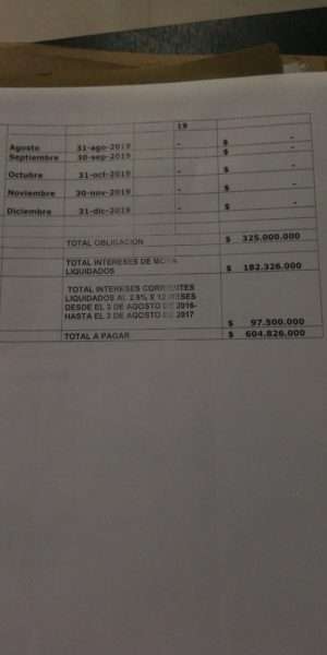 Como se sabe, la parte demándate indicó que, facilitó la suma de 610 millones de pesos, en fecha del 3 de agosto de 2016, al mandatario Álvarez José Cáceres Matosa, de dicha cifra fue cancelado el valor de 285 millones de pesos, lo que significa que el alcalde quedó adeudando la suma de 325 millones de pesos.