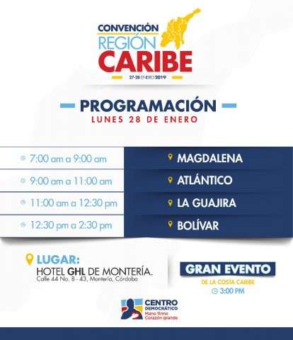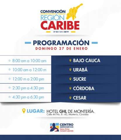 Por otra parte, es importante destacar que la Convención Región Caribe, continuará el día lunes 27 de enero y será el turno para otros departamentos como Magdalena, Atlántico, La Guajira y Bolívar.