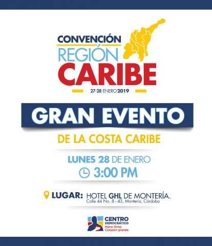Este domingo 27 de enero, se llevará a cabo la Convención Región Caribe del Centro Democrático en Córdoba, donde los precandidatos de este departamento para las próximas elecciones locales harán presencian y tendrán participación.