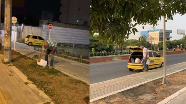 A través de las redes sociales resaltan la labor del taxista que incluso ha sido considerado como un “héroe sin capa” por la acción que realiza a diario de regar las zonas verdes de la ciudad de Montería.