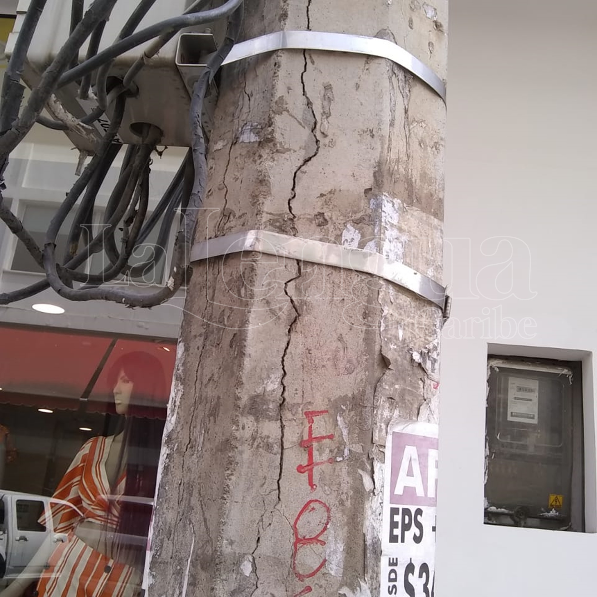 Los habitantes del centro de la ciudad de Montería entre las calles 32 y 33 con segunda, se encuentran indignados y preocupados ante el derrumbe inminente de un poste de la luz que además se encuentra en mal estado.