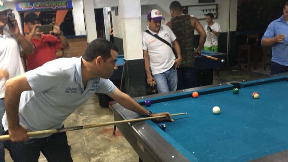 Admirados y sorprendidos, así quedaron los habitantes del municipio de Montelíbano al ver candidato a la Gobernación de Córdoba por la alianza programática Córdoba Tiene Futuro de los partidos Centro Democrático y Cambio Radical, Carlos Gómez, jugando buchacara en un establecimiento del municipio en mención.