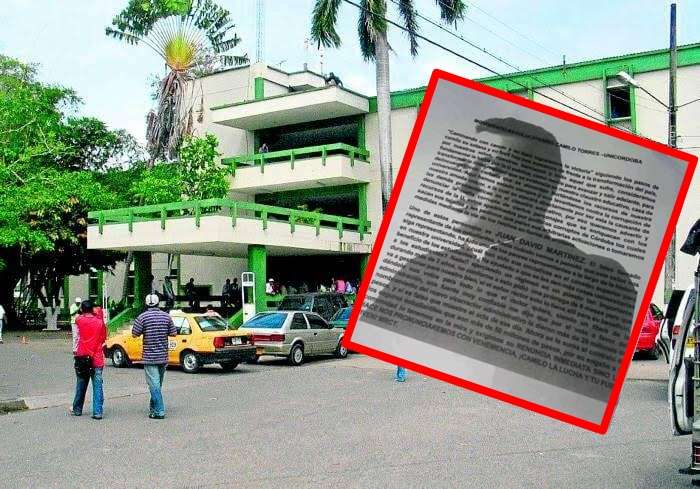 Temor y zozobra ha causado entre los estudiantes de la Universidad de Córdoba la circulación de un pasquín que amenaza la integridad del Representante de los Estudiantes, Juan David Martínez, y además, le piden lo antes posible abandonar el cargo.