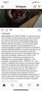 «Él es Terry Yorkie, un cachorro de tan sólo 3 meses, que se encuentra entre la vida y la muerte por culpa de personas irresponsables, que creen que porque son de la alta sociedad de #Montería hacen lo que les da la gana y no pasa nada. Estoy viviendo un episodio no muy agradable con un vecino del edificio Luxury en el barrio La Castellana llamado Ricardo Garcés, arquitecto, donde con su círculo social tiran en mi balcón sustancias alucinógenas, que se volvió un recicladero cada vez que hacen sus fiestas. Desde hace 3 días no han dejado de dormir a todos los que estamos a su alrededor con sus prestantes amigos de “alta sociedad” de apellido Vega, Ortega, etc… Del recreo y Castellana. Esas fueron sus excusas cuando se le hizo el reclamo de la marihuana que tira a los balcones. Mi hijo de tan sólo 10 años tomó en sus manos y olió sin saber que era, pero Terry, el cachorro no corrió con la misma suerte ya que el consumió del balcón está sustancia. No es la primera vez, se llama a las autoridades y vienen pero no hacen nada. Se hizo una demanda en la Fiscalía… Esto lo que estamos viviendo en el edificio Luxury», denunció la mujer.
