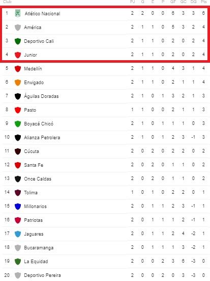 Este jueves culminó la segunda jornada de la Liga BetPlay I-2020, la cual dejó a Atlético Nacional como líder de la clasificación general con seis unidades tras el épico triunfo de 4-3 ante Equidad, en Bogotá.