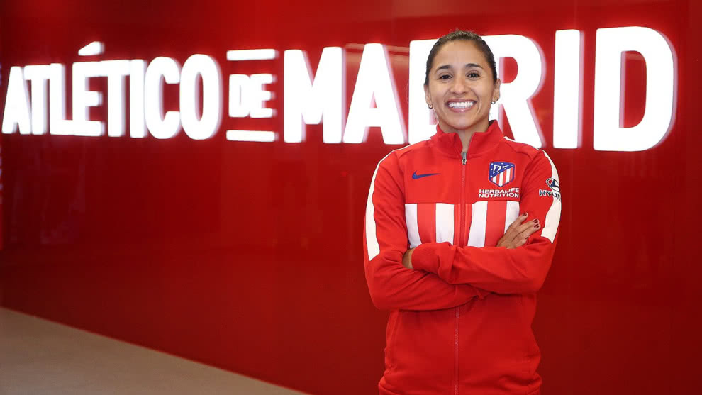 Caro Arias, que portará el dorsal número 3 en el conjunto colchonero, en su arribo a territorio español se mostró entusiasmada y con ganas de dar todo en su nuevo equipo.
