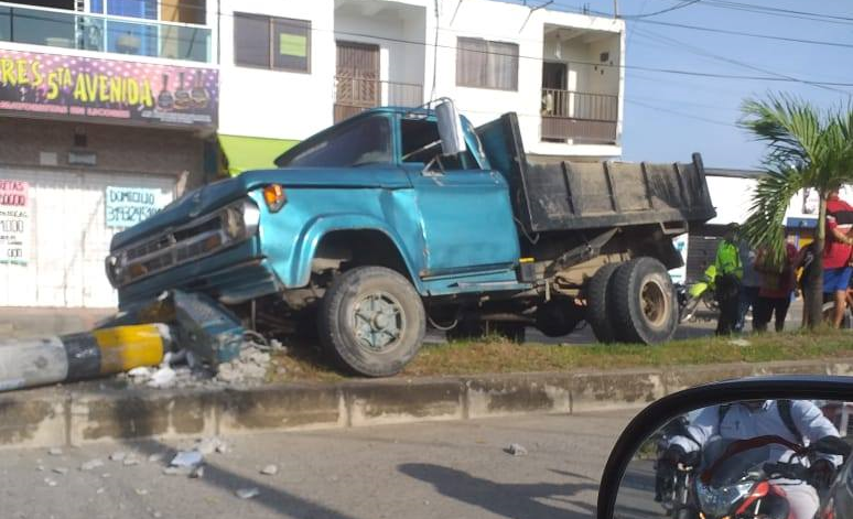 Según informaron testigos del hecho, el conductor de un camión chocó contra un poste de electricidad que terminó derrumbado en la vía principal del sector.