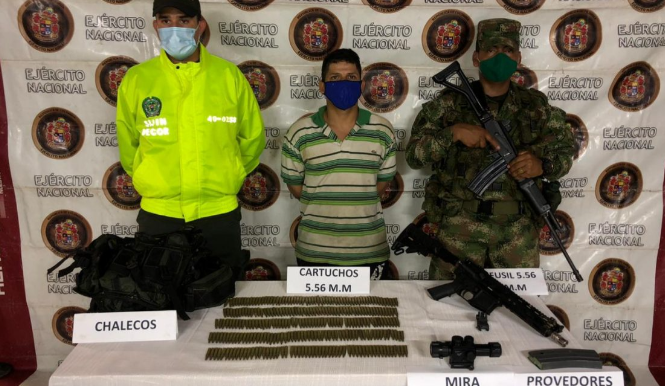 Al momento de su captura, le fue incautado un arma larga, un proveedor 368 cartuchos, material de intendencia, comunicaciones y elementos de sanidad.
