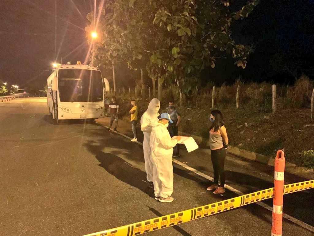 Desde la Secretaría de Salud se realizó una charla sobre las medidas de bioseguridad, así como el tamizaje a los pasajeros, entre ellos 2 menores de edad, mientras que las Secretarías de Tránsito y Gobierno coordinaron con la Secretaría del Interior de la Gobernación de Córdoba, el del traslado hacia los municipios a donde van las personas, pues de los 16 pasajeros, 7 tienen destino Montería; los demás, van hacia otros municipios cordobeses.