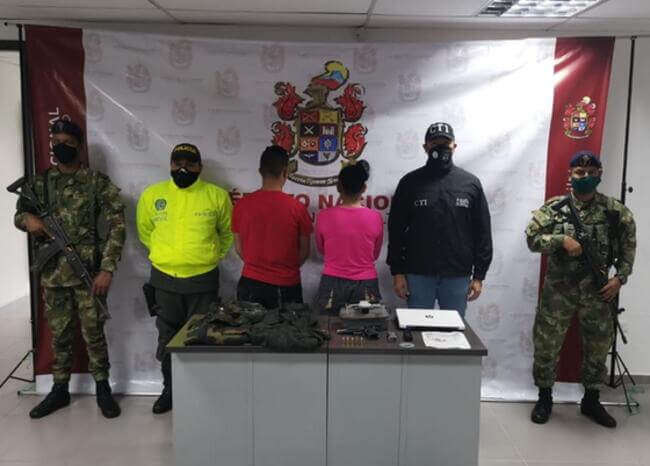 De acuerdo con el informe judicial, tropas del Ejército detuvieron a estas personas que se movilizaban en una motocicleta de alto cilindraje y que tenían en su poder, prendas de uso privativo de las Fuerzas Militares, armas de fuego, municiones y elementos de tecnología, al parecer, con información importante para inteligencia militar.