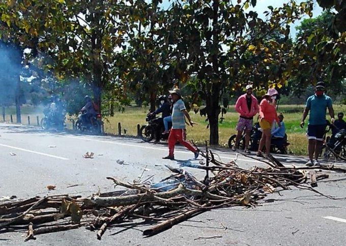 Con palos y piedras, los habitantes del corregimiento El Cerrito, salieron a protestar bloqueando la vía Montería- Planeta Rica, a la altura del kilómetro 11.