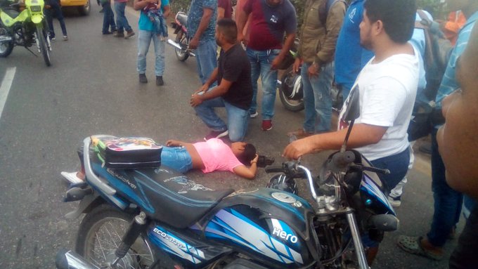De acuerdo con los testigos, al momento que la mujer conducía la motocicleta se le atravesó un habitante de la calle conocido como ‘El Ceju’ o El ‘Monedita’, hecho que habría ocasionado que se cayera.