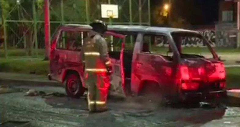 En plena calle, desconocidos le prendieron fuego a una miniván de transporte informal