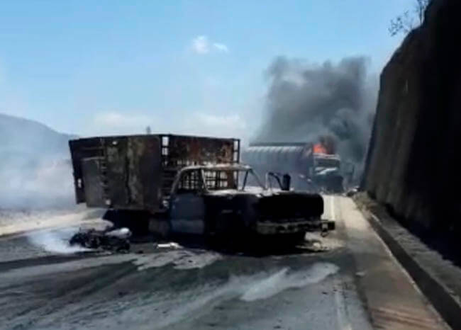 La banda criminal incineró a una tractomula tipo cisterna, un camión, y dos camionetas, lo que conllevo a que la vía tuvo que ser cerrada por completa generando caos en la movilidad y un panorama poco alentador para quienes habitan en la subregión del Catatumbo.