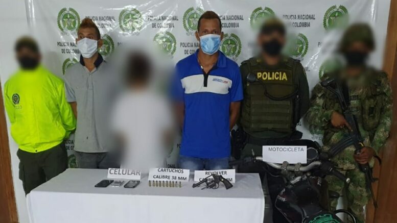 De acuerdo al informe de las autoridades, la detención de los sujetos se llevó a cabo en el barrio El 50, de la localidad en mención, donde los uniformados sorprendieron a Omar Landero, alias ‘Costeño de 28 años de edad, y Luis González, alias ‘El Cole’ de 36, presuntos sicarios al servicio de la estructura criminal ‘Los Caparros’.
