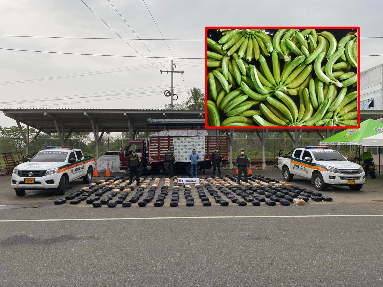 Según el reporte de las autoridades, eran 1.700 kilos de marihuana empaquetada que era ocultos en la carrocería y llantas de tres camiones que transportaban un cargamento de plátanos verdes desde el municipio de Caucasia y Buenaventura con destino a la ciudad de Cartagena.