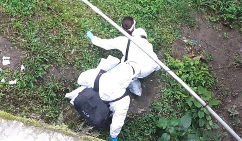 Tras esto, los investigadores se desplazaron inmediatamente al sitio y durante la inspección localizaron un costal en cuyo interior estaban las piernas de una persona cuya identidad no ha sido determinada y pese a las arduas labores de búsqueda, no ubicaron más partes del cadáver.