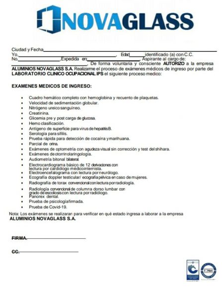Sin embargo, para realizar el proceso de incorporación los interesados deben realizarse unos exámenes médicos en un laboratorio de Sahagún, los cuales tienen un costo de 700 mil pesos, de los que la empresa, aportaría el 85%, quedando estos en 90 mil.