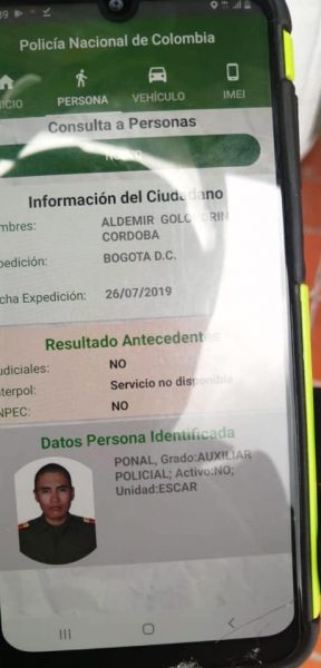 Pese a que no se tienen mayores detalles sobre el hecho, se conoció que, se trata de Aldair Golondrino Córdoba, quien fue sorprendido por las autoridades, caminando en plena calle en la localidad de Bosa en Bogotá, donde portaba el uniforme e insignias.