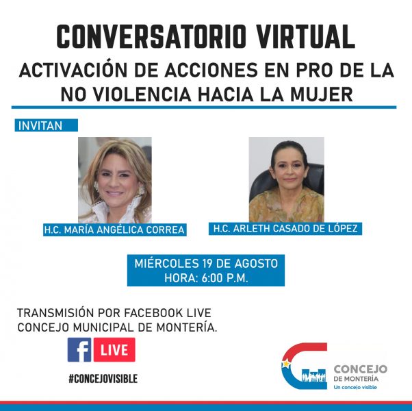 El Concejo de Montería realizará este miércoles 19 de agosto, un conversatorio virtual con el fin de activar acciones en pro de la no violencia contra la mujer.