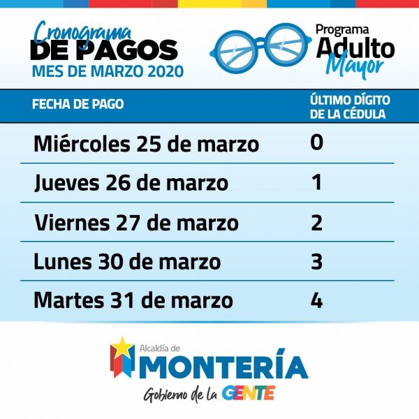 Asimismo, el pago, a partir de este 25 de marzo, se hará de acuerdo al último dígito de la cédula del adulto mayor beneficiario del programa.