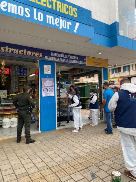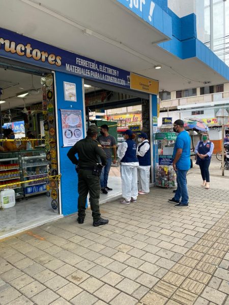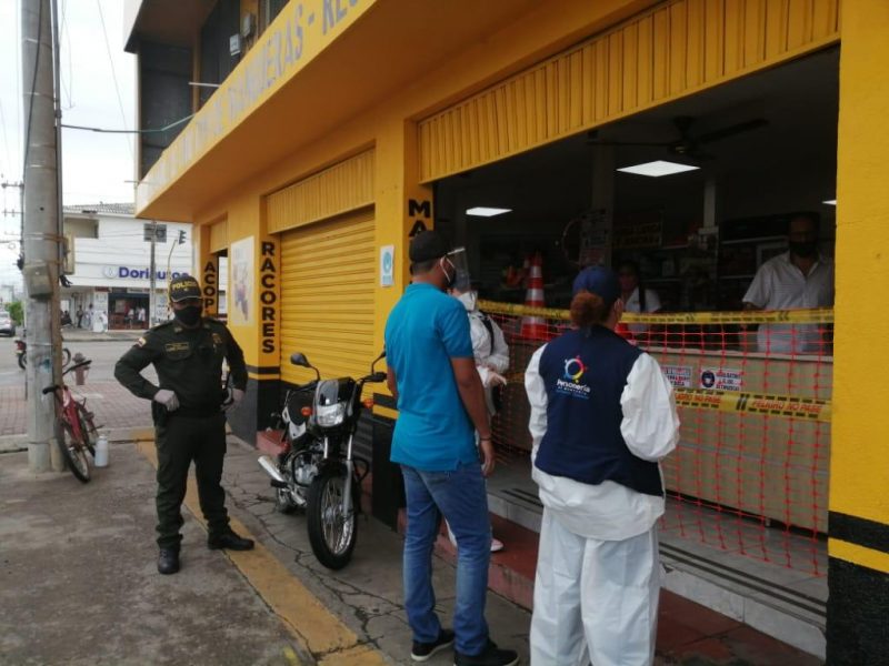 Con el fin de evitar la propagación del Covid-19, uniformados de la Estación Norte de la Policía Metropolita de Montería, personal de la Personería y la Secretaria de Gobierno, estuvieron visitando los establecimientos de El Centro de la ciudad.