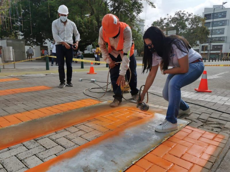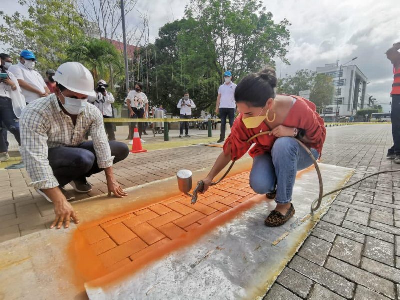 La Gestora Social, Antonella Vega Galofre, pintó la cebra junto a la coordinadora del programa de Mujeres del municipio, Dilia Acosta, la concejal María Angélica Correa y Danna, una joven habitante del barrio El Dorado que transitaba por el lugar.
