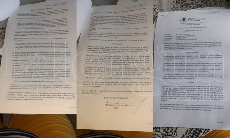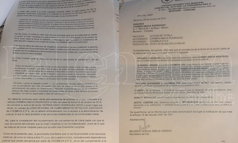 “La EPS lo único que me dice es que no hay pagos anticipados, ni proveedor para la cirugía, por lo que debo esperar. Yo metí una tutela, hasta incidente de desacato, estoy cansada de esperar, porque cada día se deteriora más mi salud.”, relató Anaya.