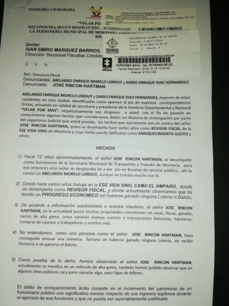 Así las cosas, solicitan a los entes de control que se pongan al frente de esta situación y pongan la lupa sobre el cuestionado accionar de la actual gerente del Camu Vida Sinú.