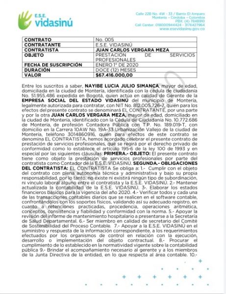 En este orden de ideas, Julio cuyo mandato va hasta el mes de marzo, estaría comprometiendo los recursos económicos públicos de la ESE Camu Salud Vida.