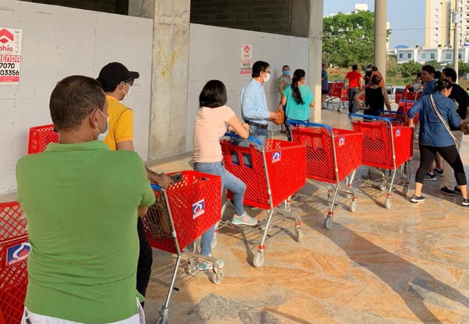 Compradores han asistido en masa a los almacenes y realizan largas filas en los establecimientos de comercio para poder adquirir los alimentos.