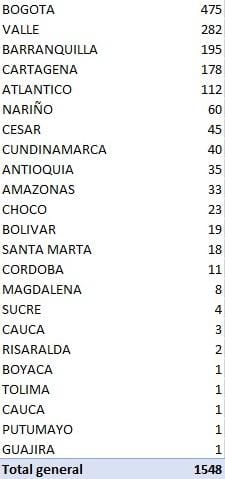 Para este sábado 30 de mayo el Ministerio de Salud informó que se presentaron 1.548 nuevos casos de Covid-19 en Colombia, los cuales elevaron la cifra de contagiados a 28.236.