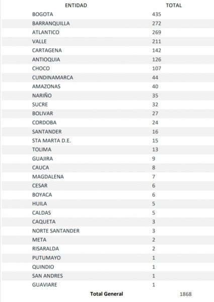 Covid-19 en Colombia: van 54.931 contagiados y 1.801 muertos