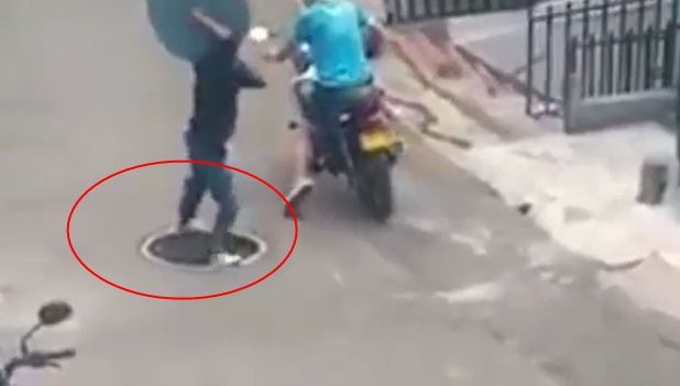 Un particular hecho se registró en la ciudad de Medellín donde, al parecer, a un “amigo de lo ajeno” el karma le dio una lección cuando cayó en el hueco de la alcantarilla de la que, segundos antes, se robó la tapa.