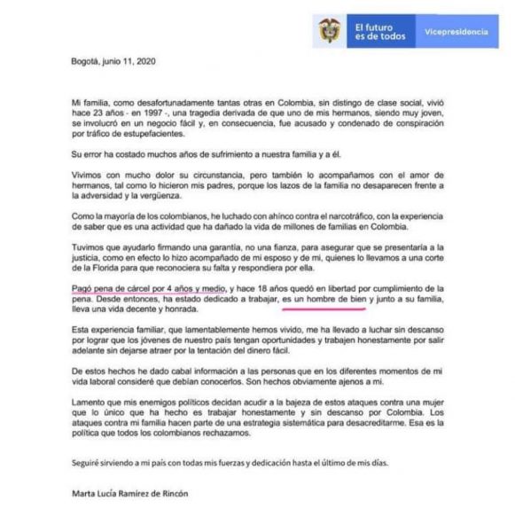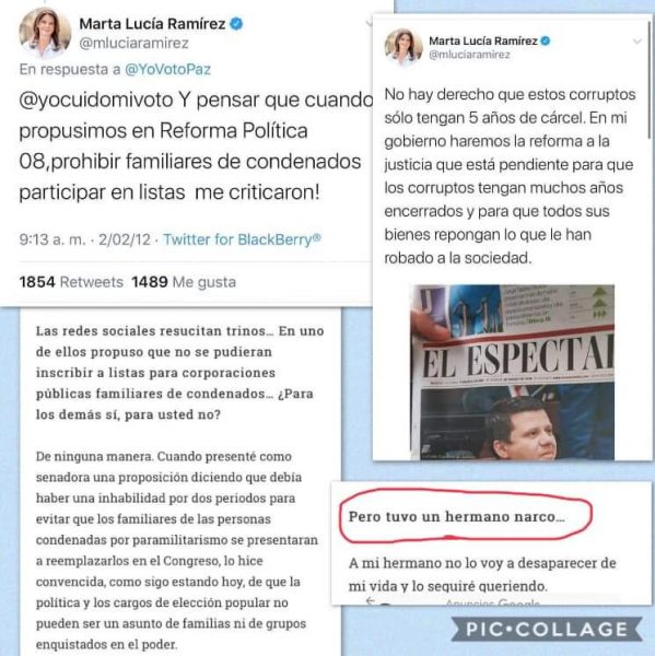Como se recordará, hace pocos días se descubrió que la vicepresidenta de Colombia, quien siempre ha sido partidaria de la mano dura contra el narcotráfico, tiene un hermano que estuvo preso en Estados Unidos, por dicho delito.