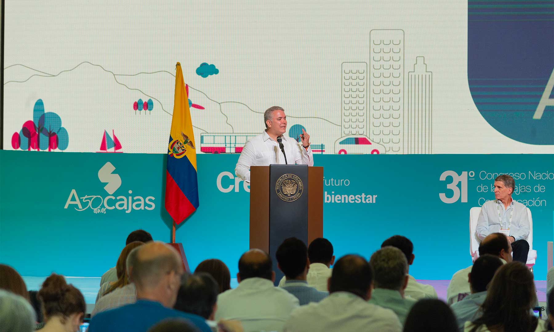 El Mandatario aseguró que las Cajas de Compensación Familiar son un mecanismo para compensarle al trabajador su esfuerzo laboral con recreación, con acceso a salud, a medicamentos y con financiamiento.
