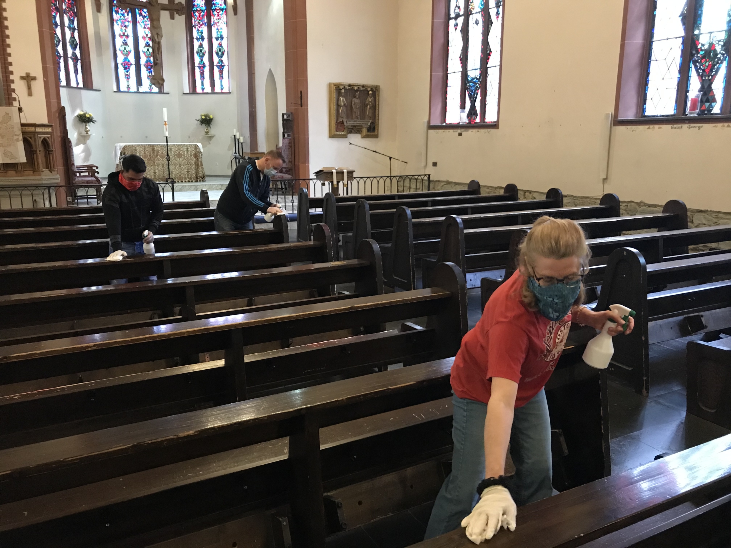 Estará prohibido cantar durante los ritos, por la expulsión de saliva que propagaría el virus, tampoco se pondrá la hostia en la boca del feligrés, o el saludo de paz.