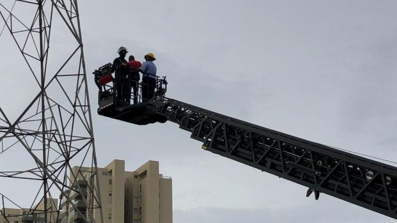 Agentes policiales y rescatistas lograron realizar el rescate luego de que se suspendiera el servicio de energía, teniendo en cuenta que la torre en la que se había subido el sujeto tenía varias líneas de alta tensión.