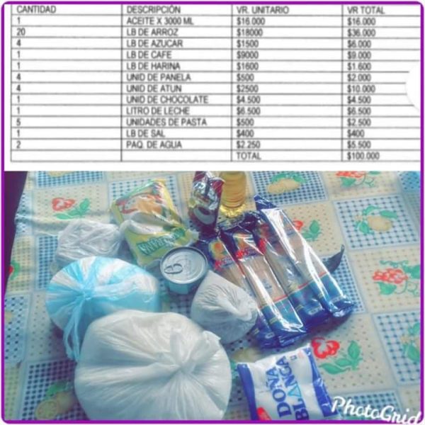“Una bolsa de leche de un litro no cuesta en ninguna parte $6.000 y las bolsas de arroz que entregaron tenían solo cinco libras y en el listado hablaban de 20 libras”, indica el denunciante solo por hacer referencia en dos de esos productos.