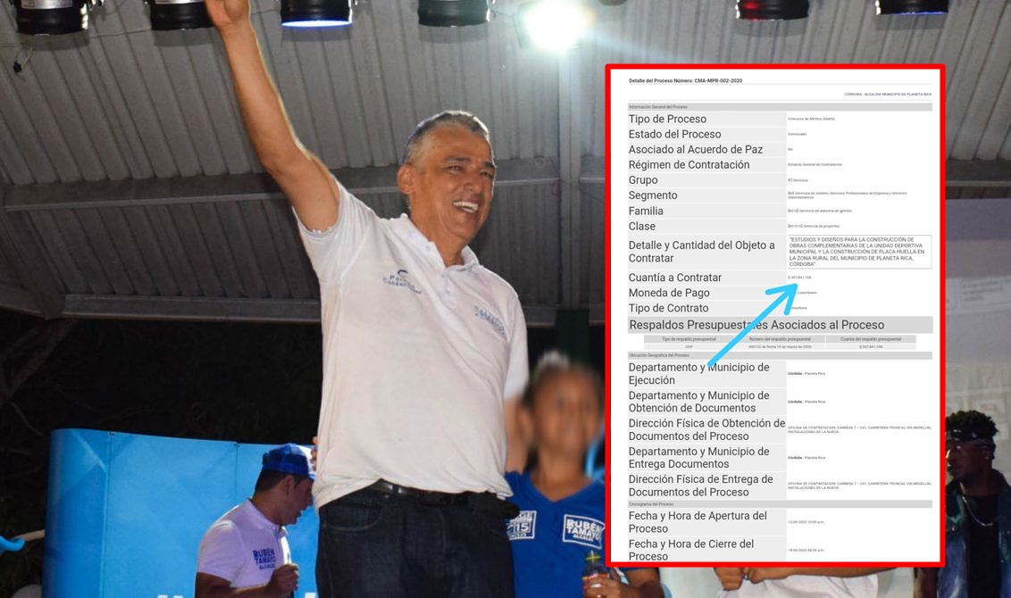 Se trata de un nuevo contrato presuntamente para el “estudio y diseño de la construcción de obras complementarias de la unidad deportiva municipal y la construcción de placa huella en la zona rural del municipio de Planeta Rica”
