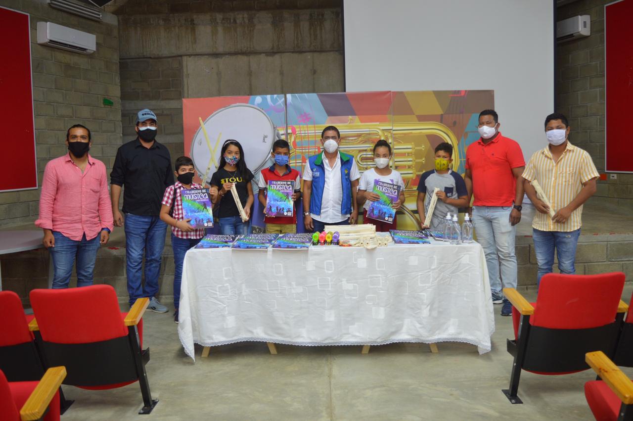 El alcalde Harving Espitia Arteaga entregó herramientas didácticas a los niños, jóvenes y adultos que hacen parte de la escuela de formación musical a cargo de los maestros y licenciados Alejandro Niño y Servio Angulo.