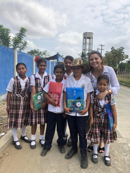 A través de la alcaldía de San Pelayo, la gestora social, Claudia García hizo entrega de unos kits escolares a los estudiantes de la Institución Educativa Amaury García Burgos del corregimiento de las Guamas.